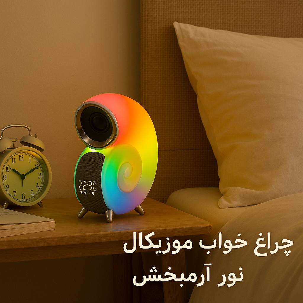 چراغ موزیکال حلزونی یک چراغ خواب چندکاره برای زیباسازی و آرامسازی فضای اتاق است. این دستگاه با نورهای رنگی، آلارم بیدارباش، اسپیکر و رادیو، هم برای خواب راحت مناسب است و هم برای ایجاد فضایی دلنشین در خانه یا محل کار.