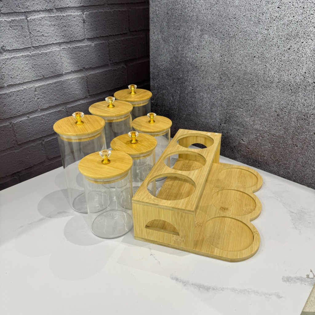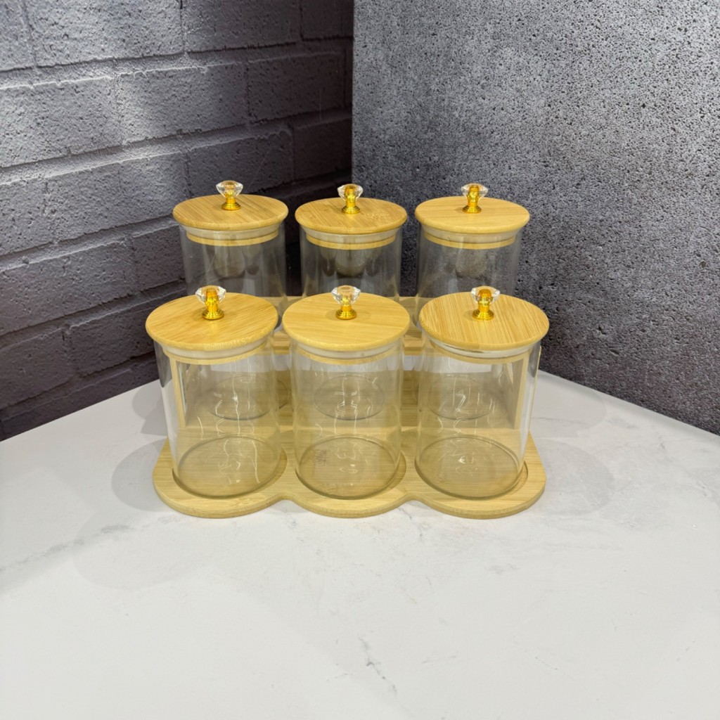 ست شش عددی بانکه پیرکس درب الماسی همراه با استند بامبو