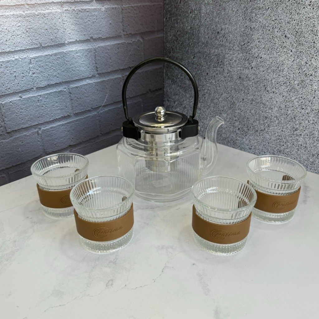 ست قوری و استکان پیرکس شعله مستقیم دسته مشکی
