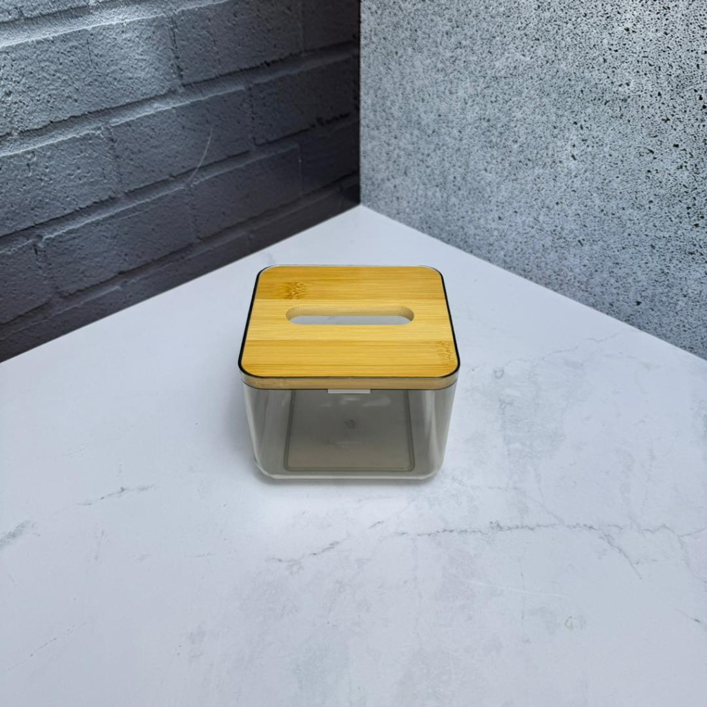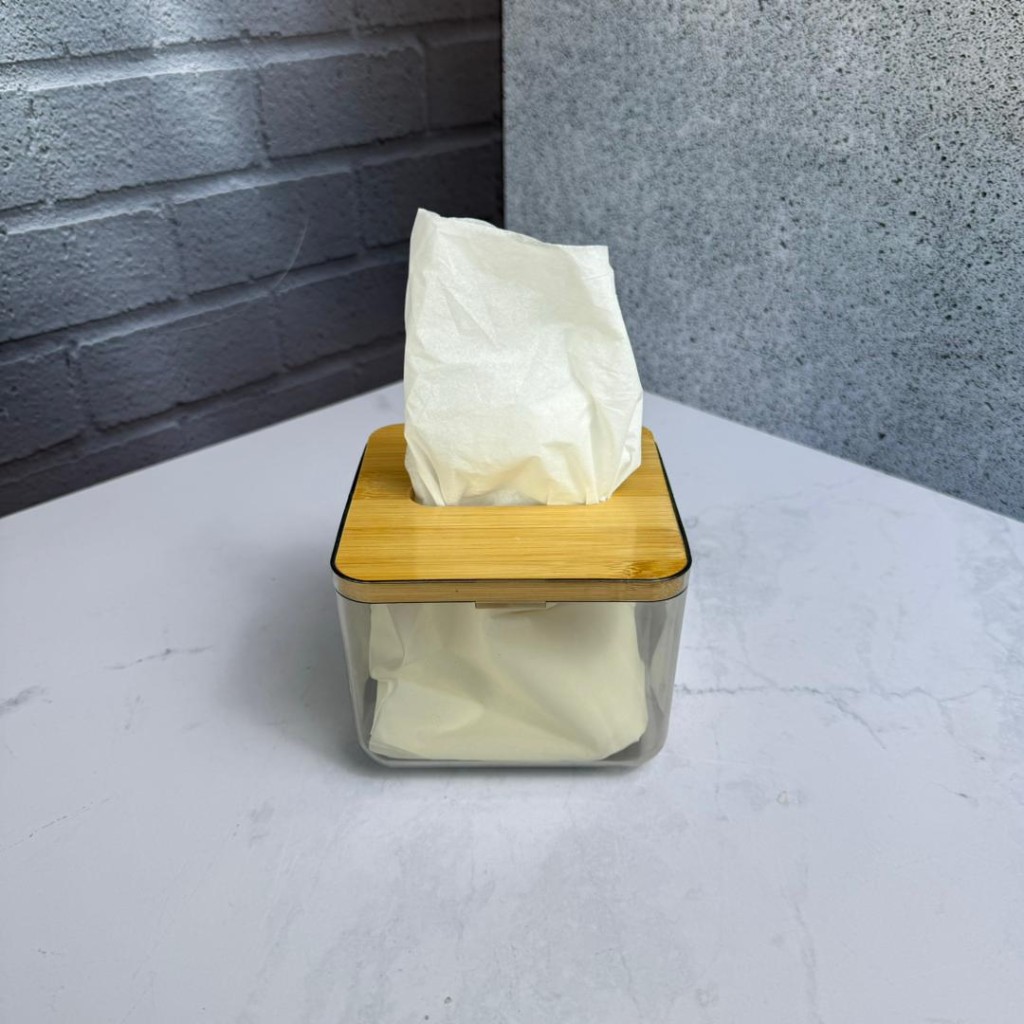 جای دستمال کاغذی مربعی اکرولیک درب بامبو