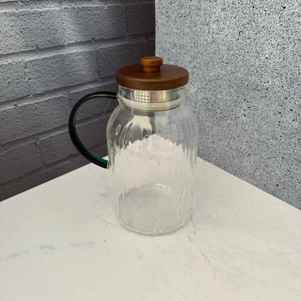 کتری پیرکس طرح سنگی آنتی شوک درب بامبو دسته سبز اعیانی