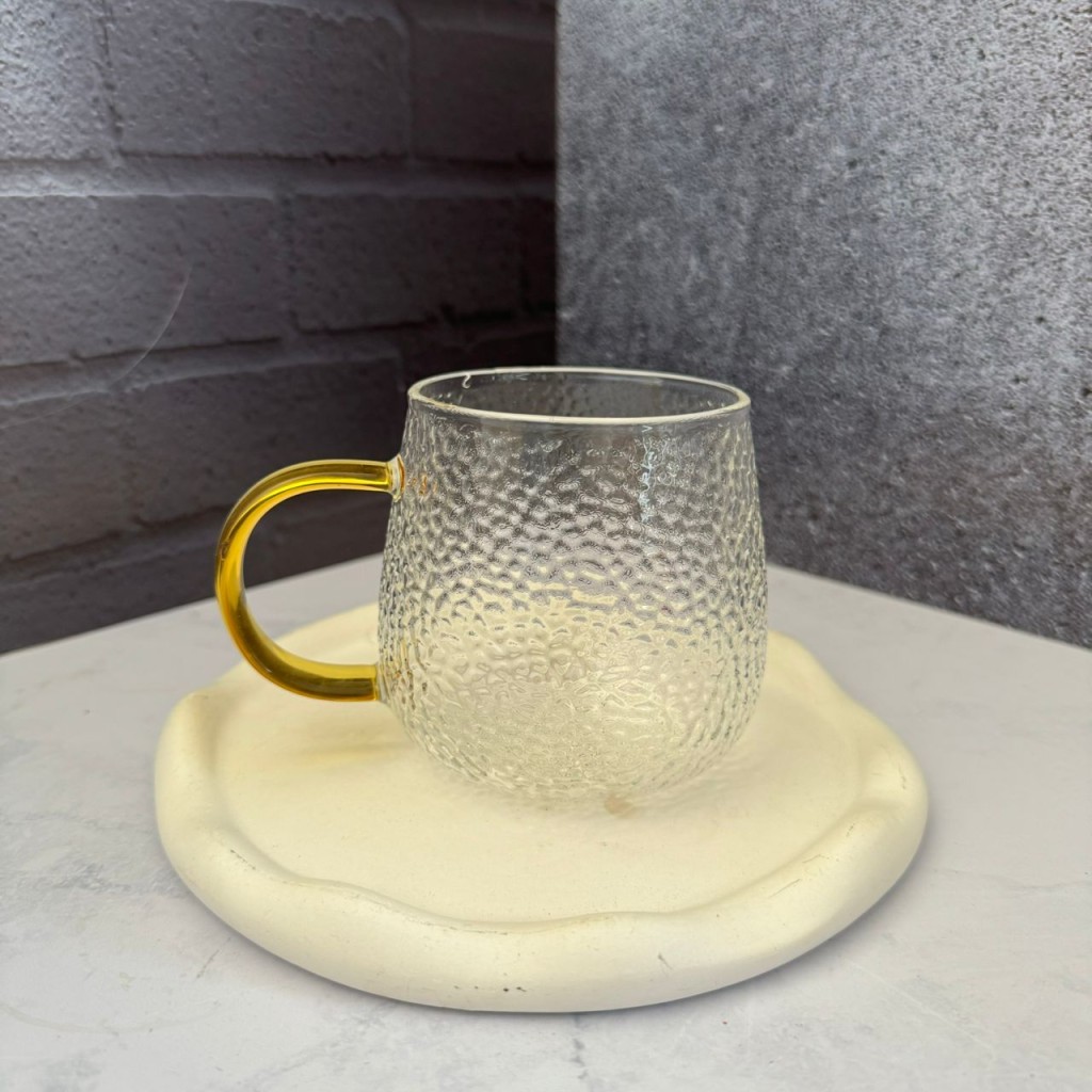 لیوان پیرکس مدل برفی دسته طلایی 400 میل
