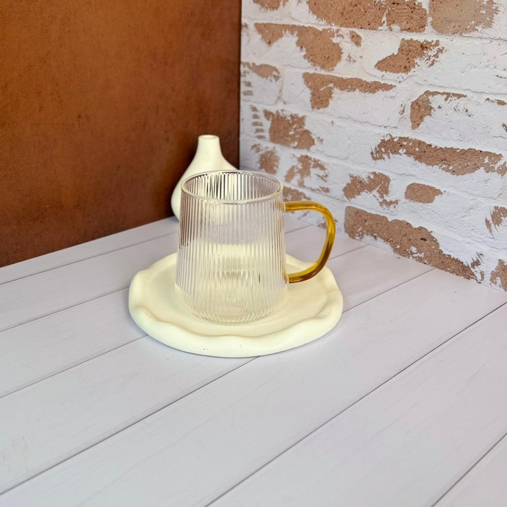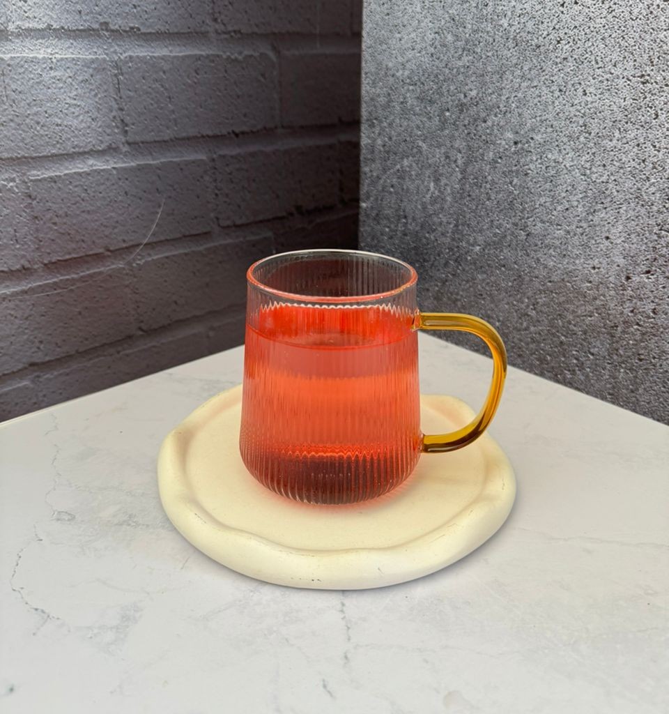 لیوان پیرکس طرح شیاردار دسته طلایی 450 میل