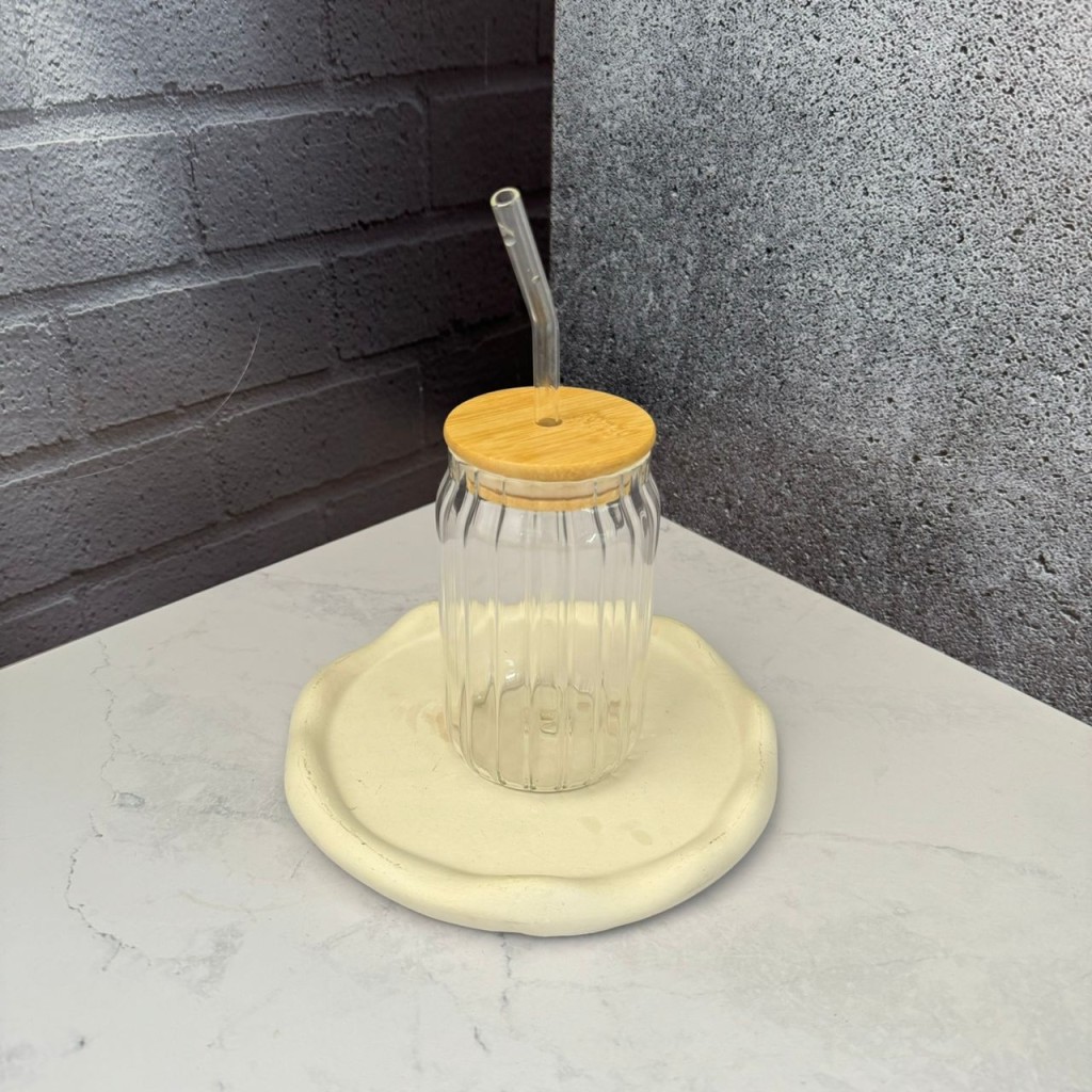 لیوان اسموتی پیرکس درب بامبو مدل شیار دار