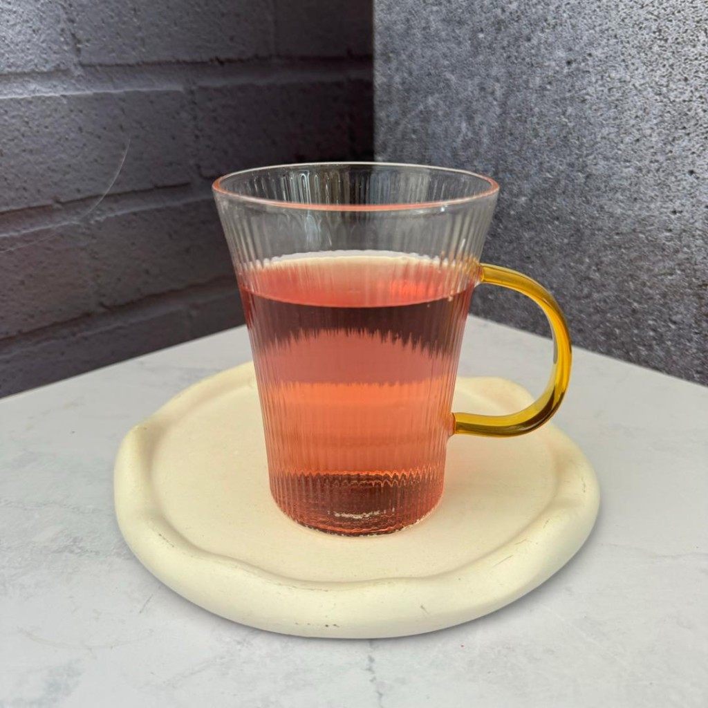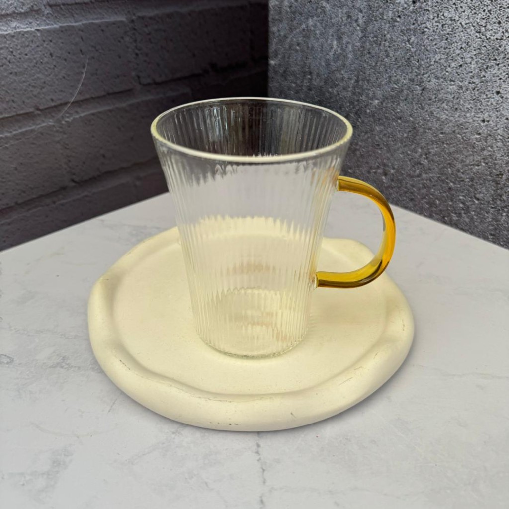 لیوان طرح شیاردار دسته طلایی 350 میل