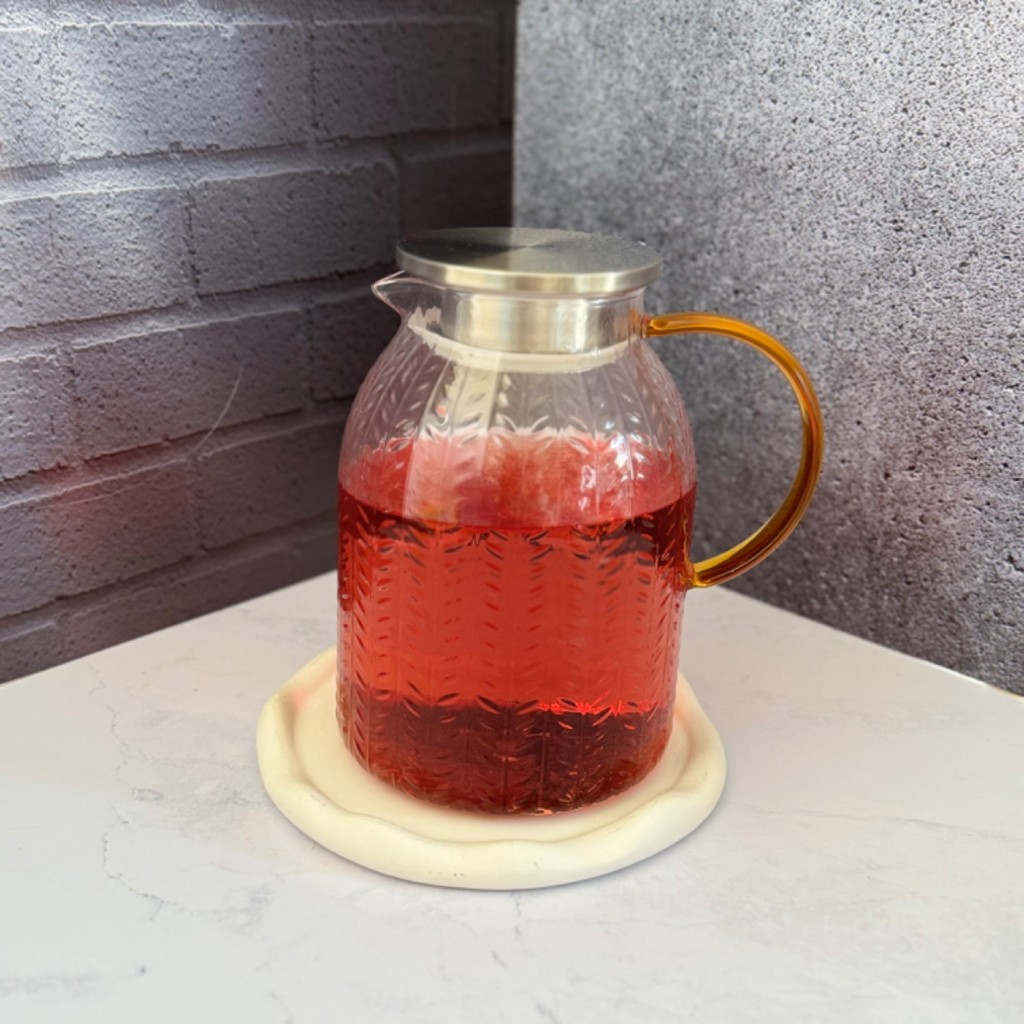 پارچ پیرکس لانه زنبوری دسته طلایی درب استیل 1000 میل