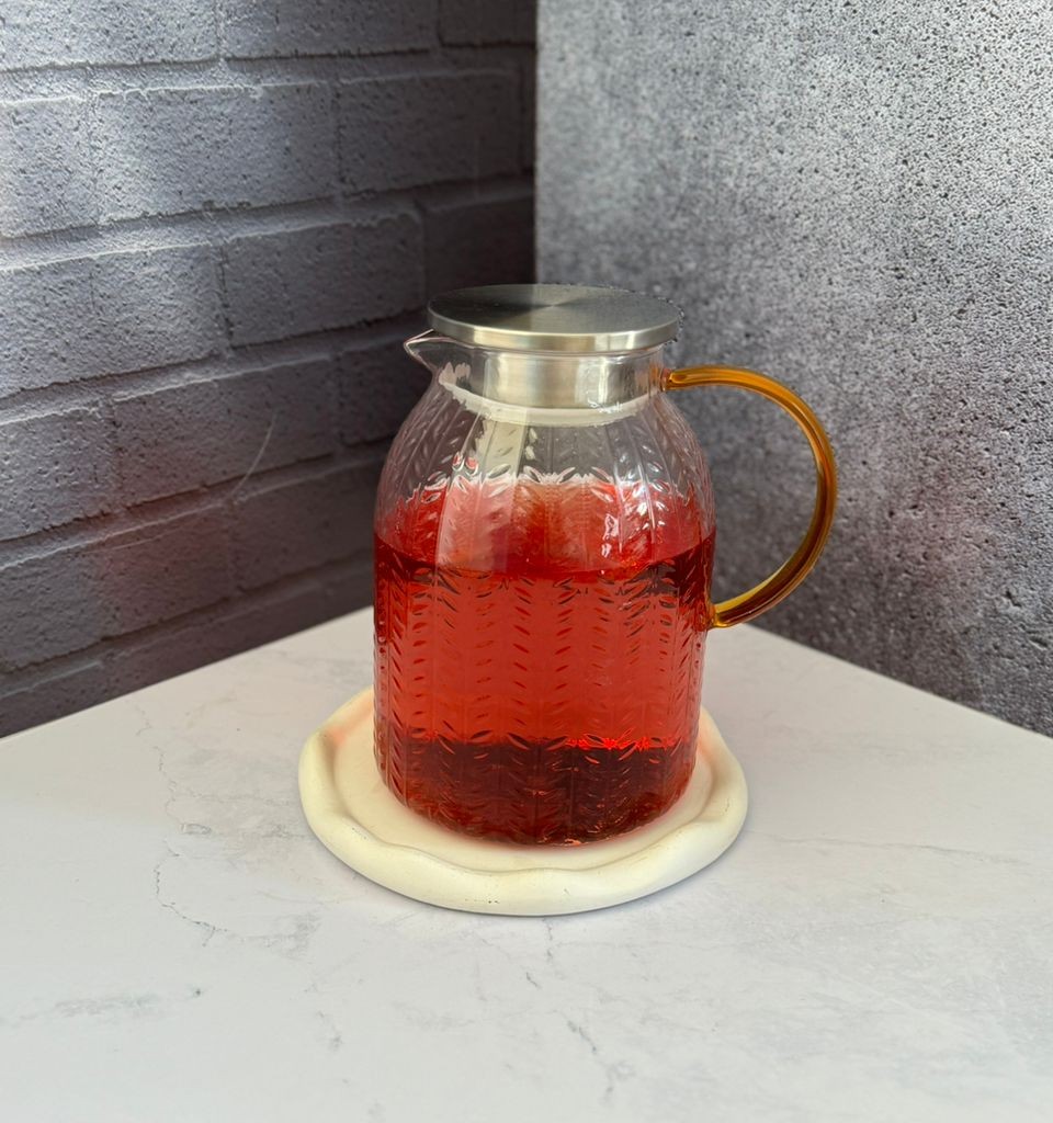 پارچ پیرکس دسته طلایی طرح گندم درب استیل 1800 میل