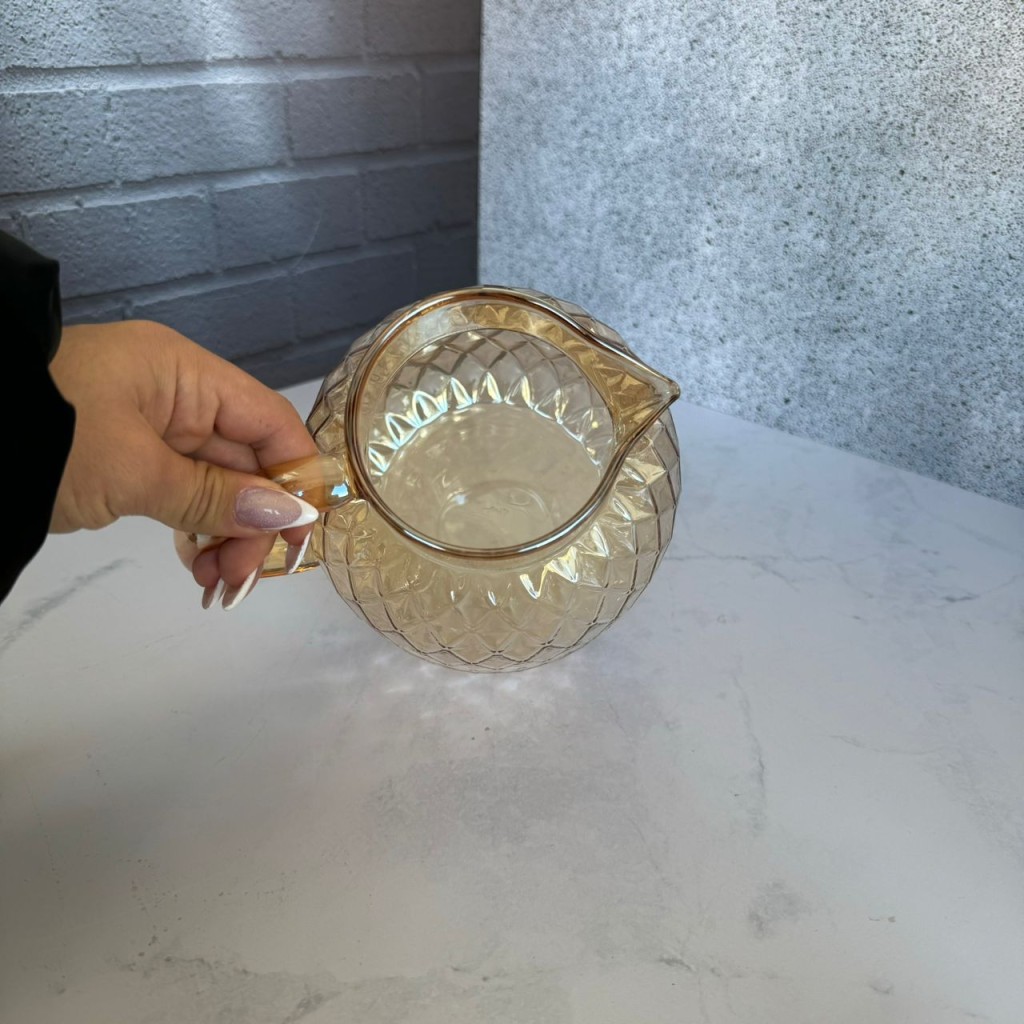 پارچ پیرکس درب استیل شامپاینی طرح لوزی 1500 میل