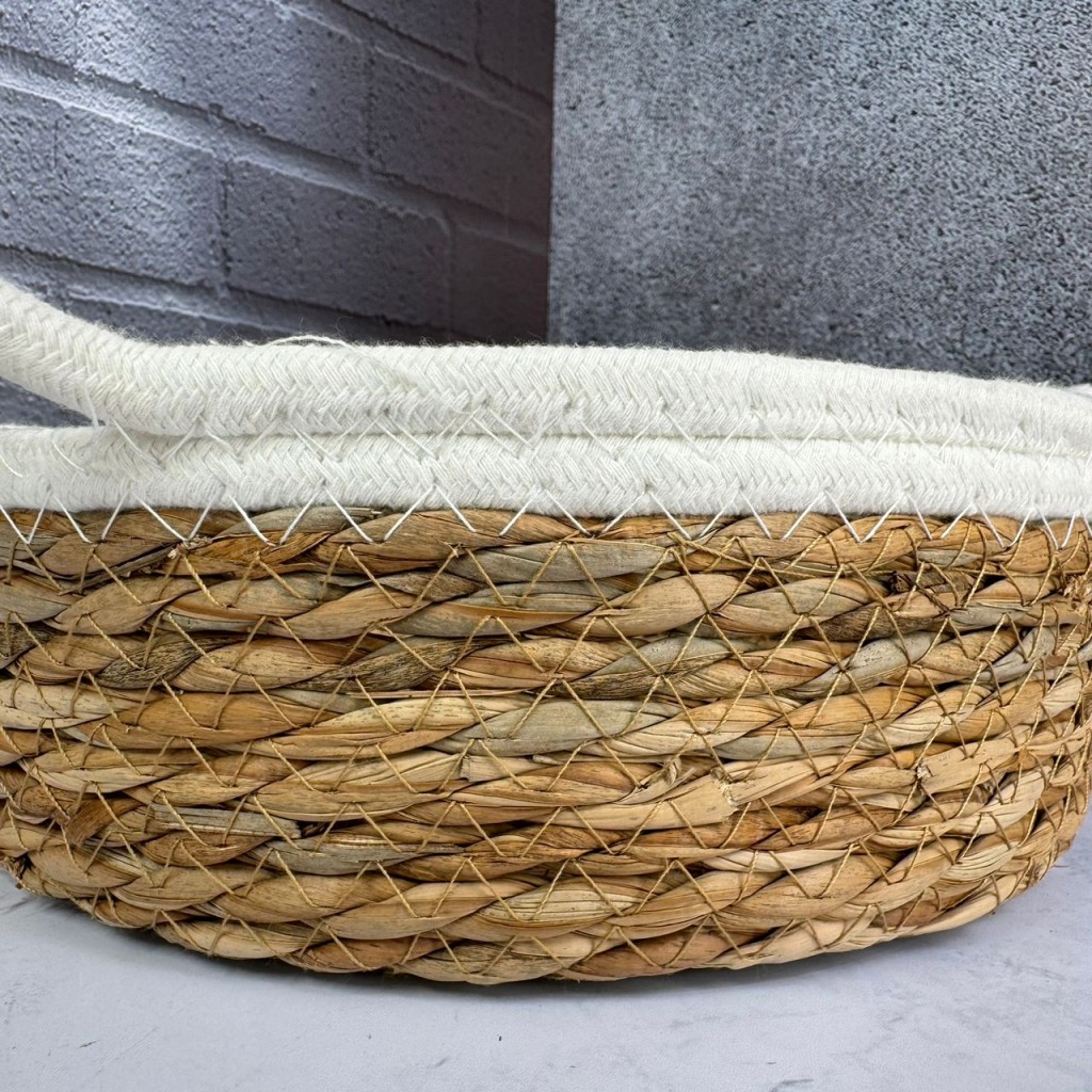 سبد حصیری سه عددی دسته بامبو لبه قیطان