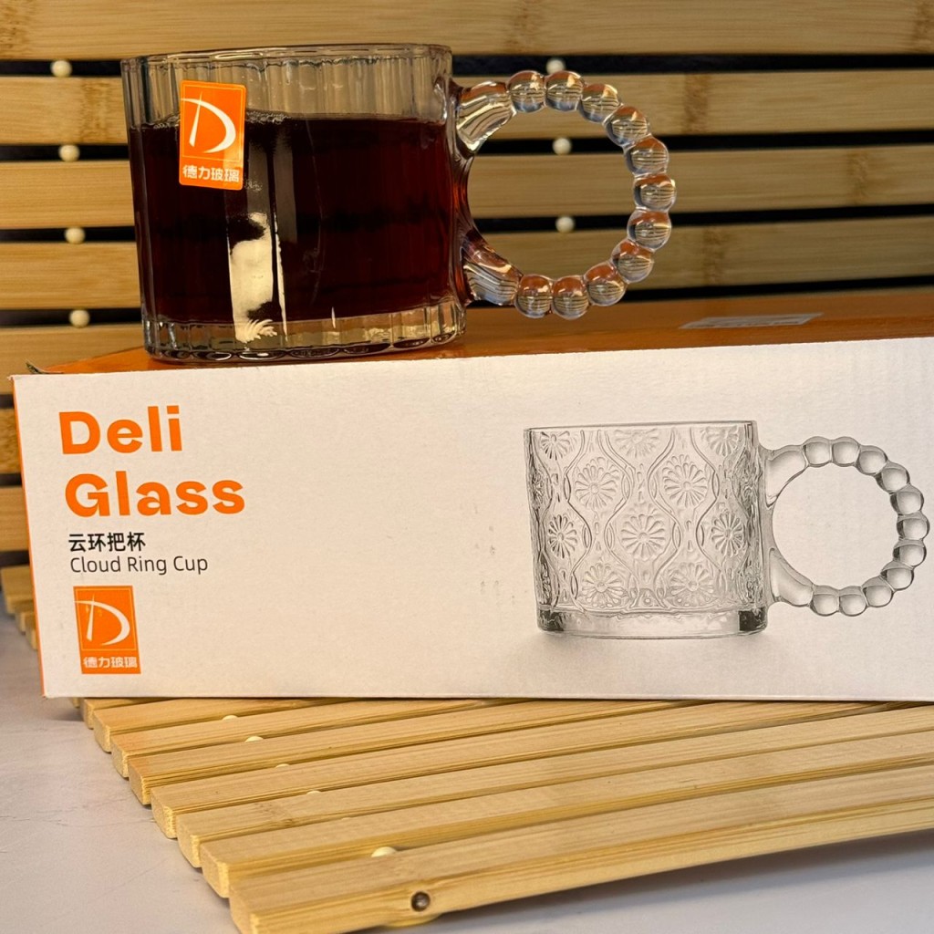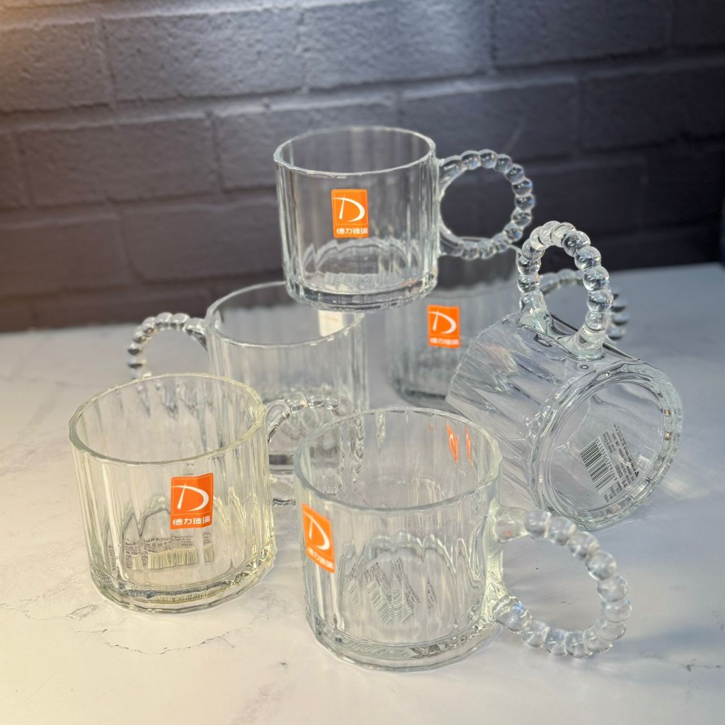 ست شش عددی لیوان دسته دار نگینی طرح شیاردار دلی گلس