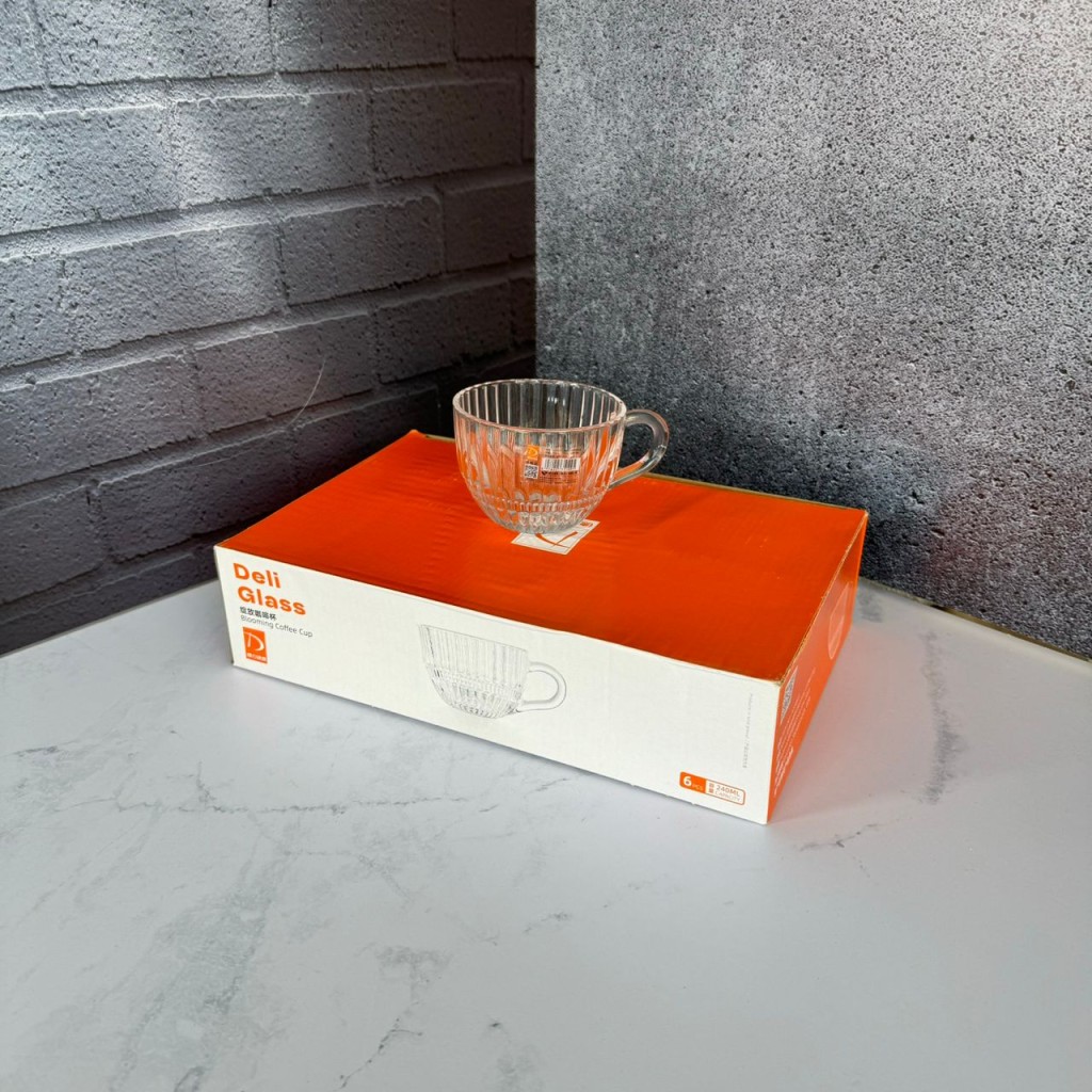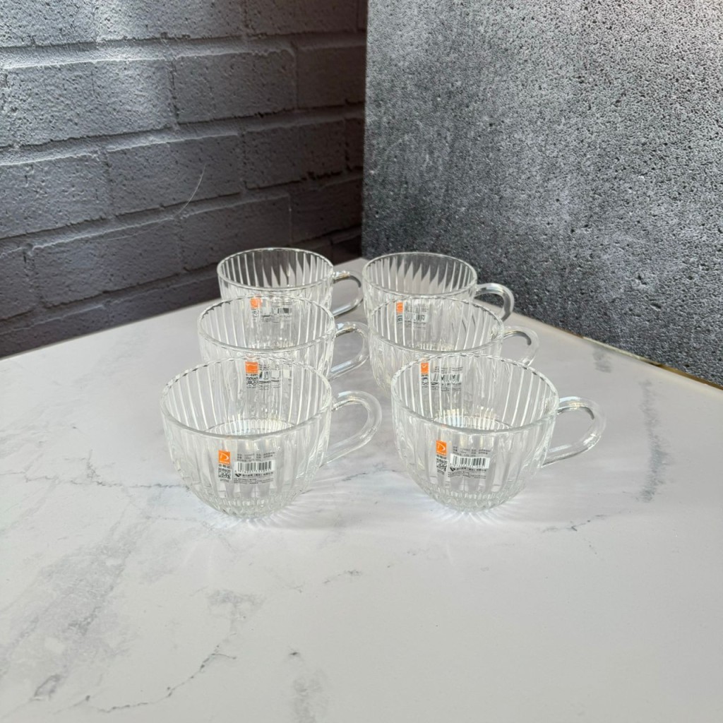 ست شش عددی استکان دسته دار طرح خطی دلی گلس