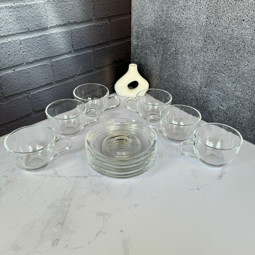 ست استکان و نعلبکی 12 پارچه دسته دار طرح بیسیک دلی گلس