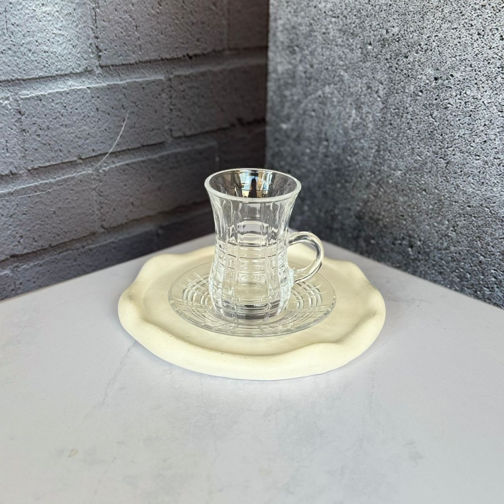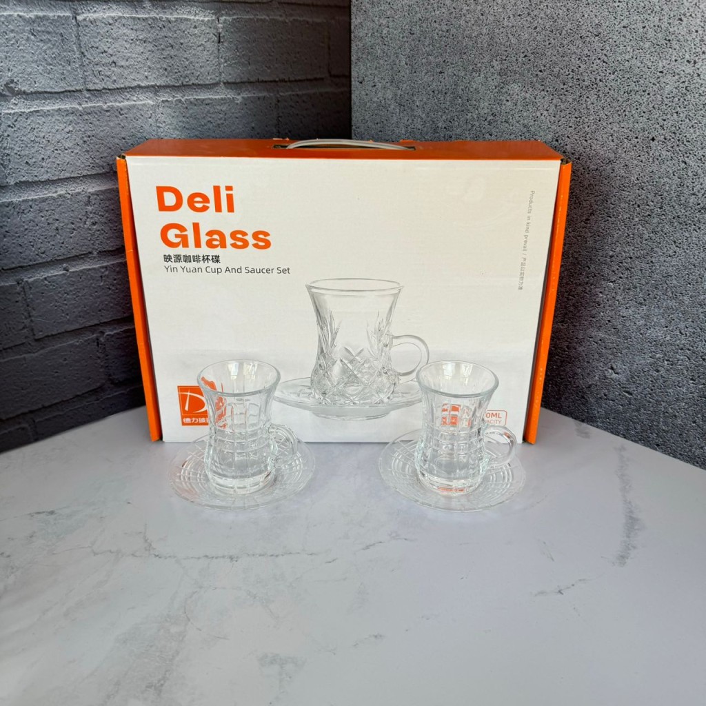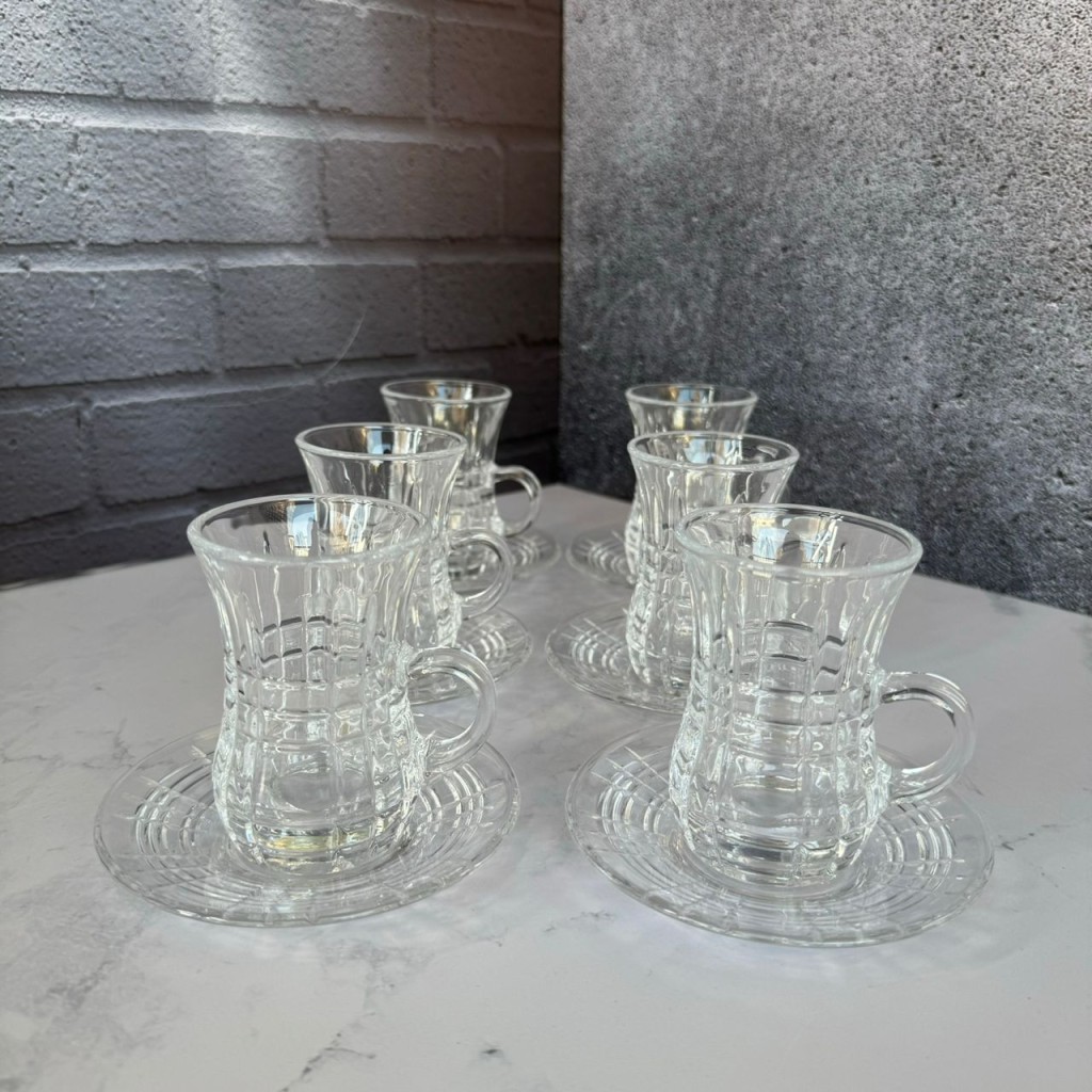 ست استکان و نعلبکی 12 پارچه کمر باریک طرح چارلی برند دلی گلس