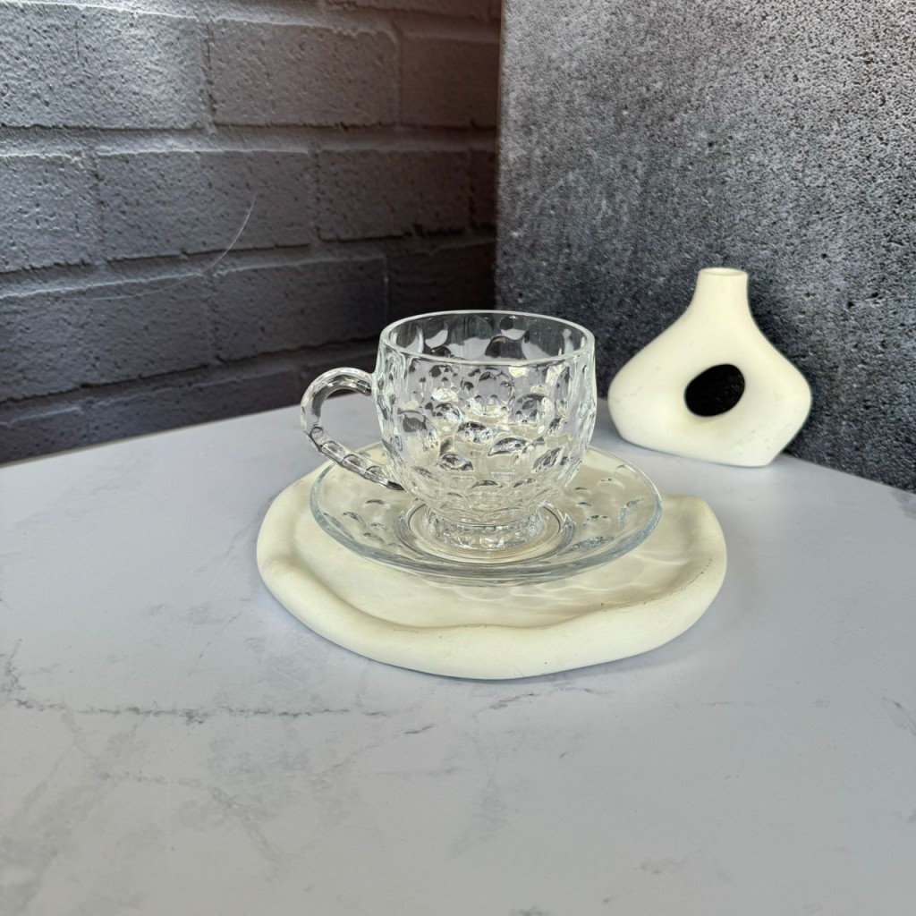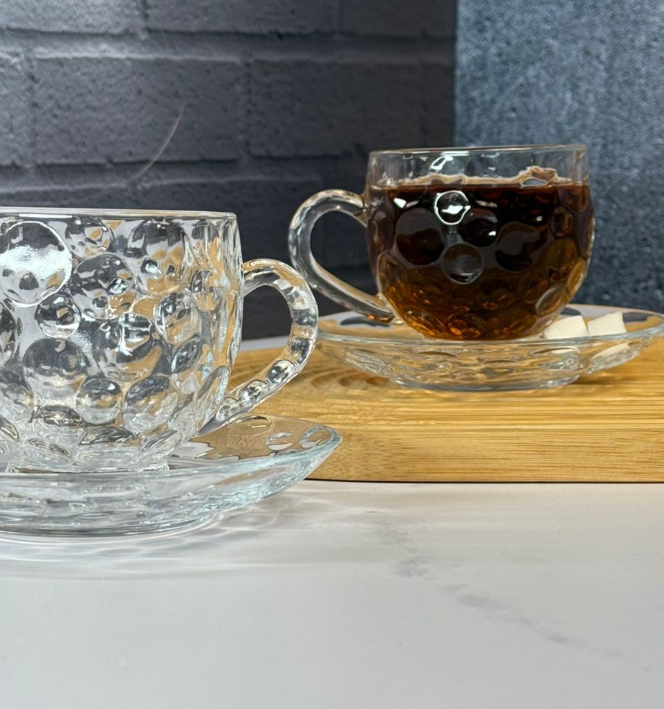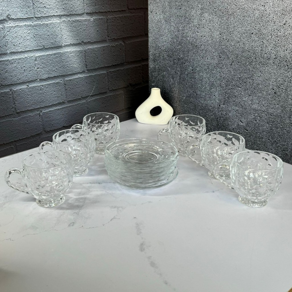 ست استکان و نعلبکی 12پارچه طرح حبابی دلی گلس