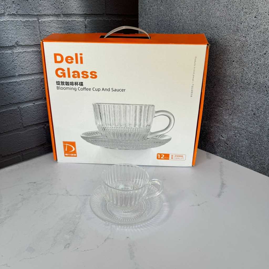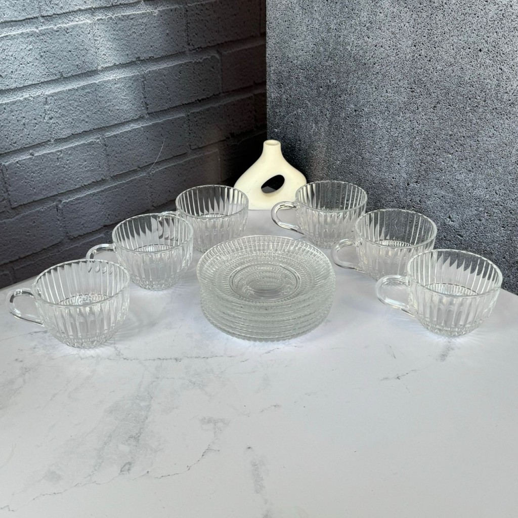 ست استکان و نعلبکی 12پارچه طرح خطی دلی گلس