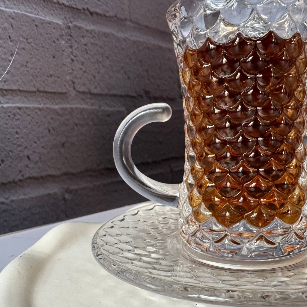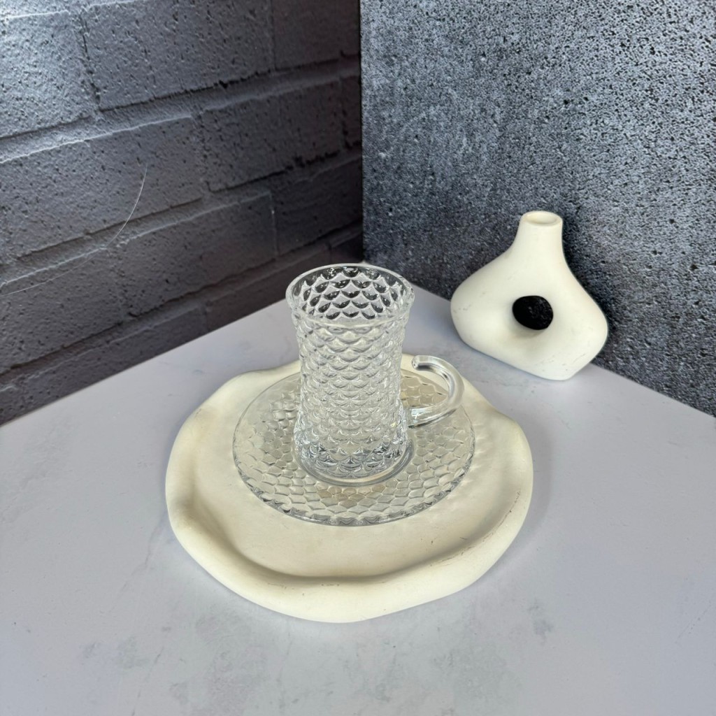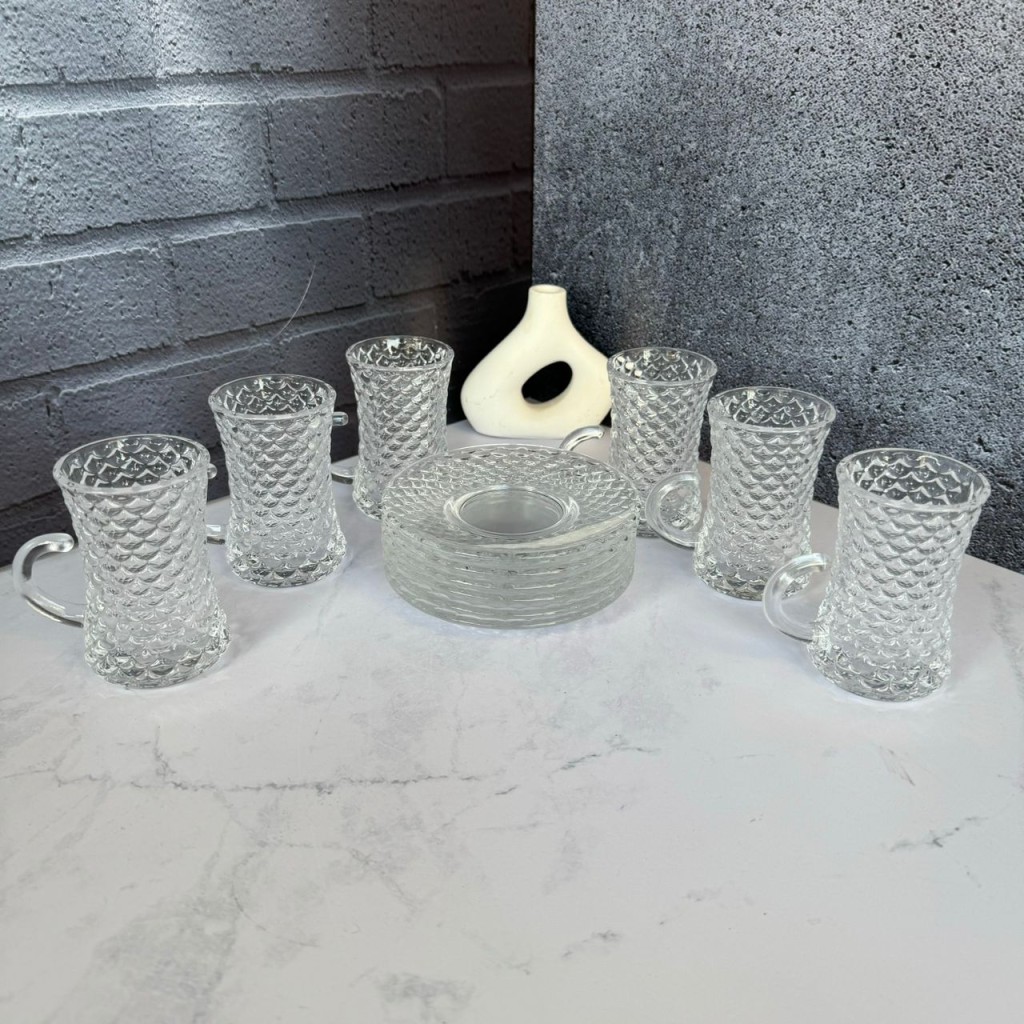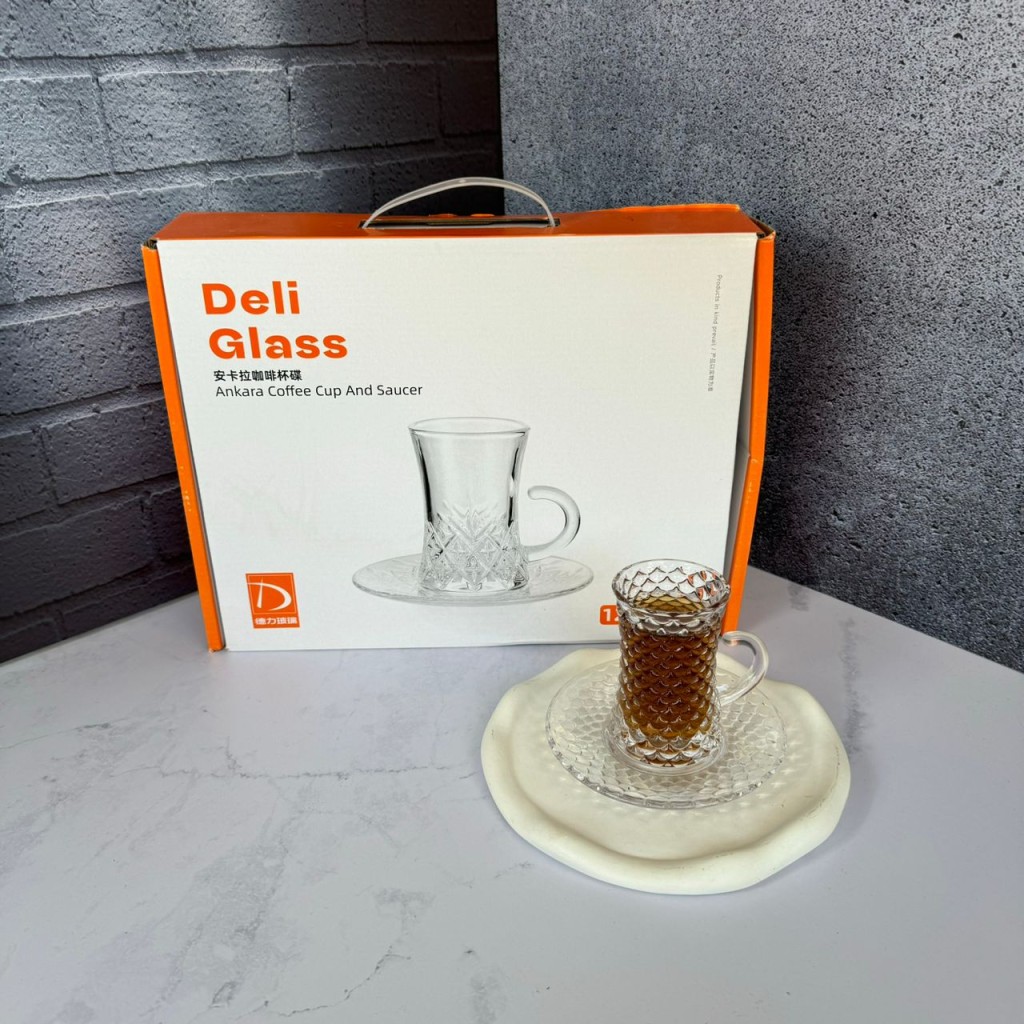 ست استکان و نعلبکی 12 پارچه کمر باریک طرح پوست ماری دلی گلس