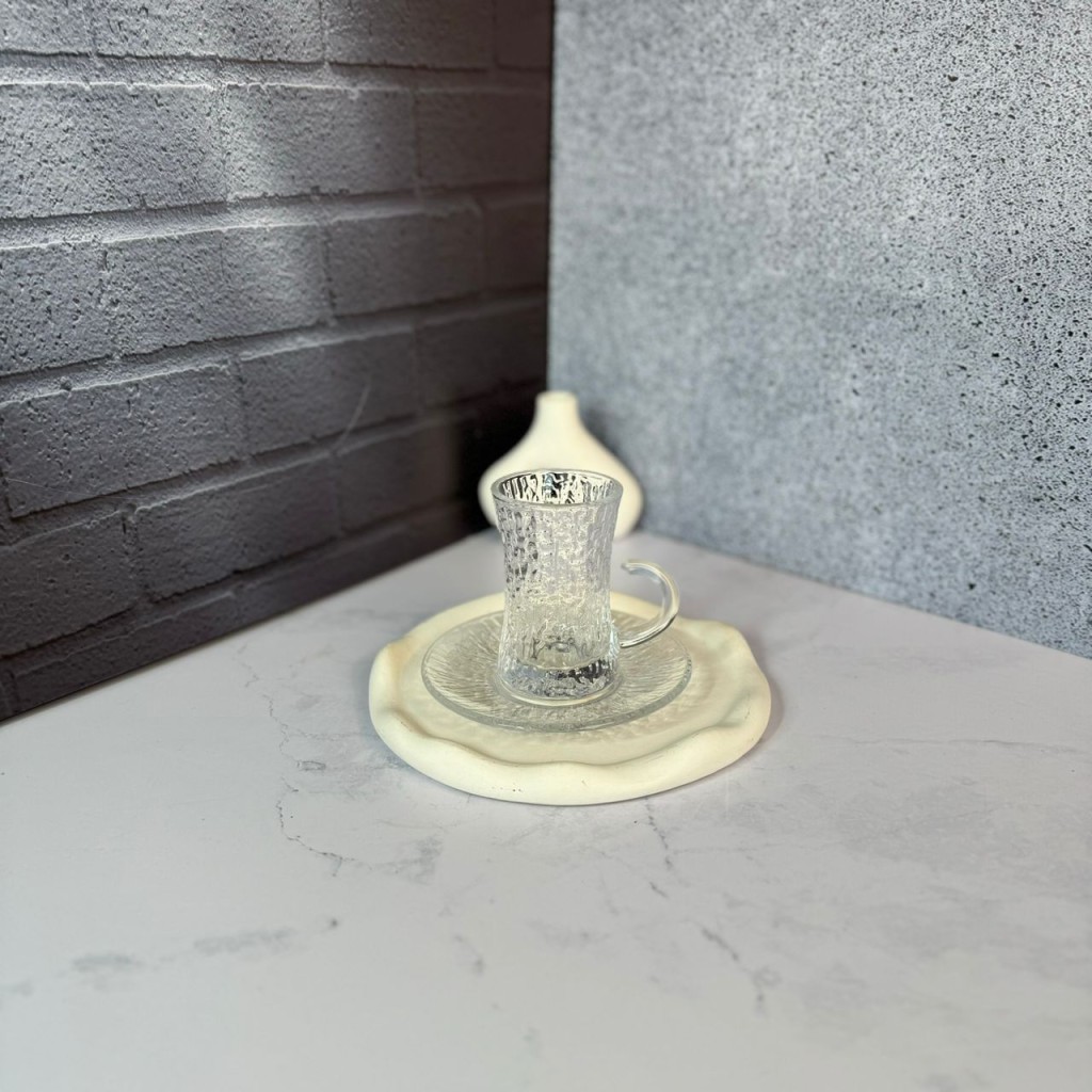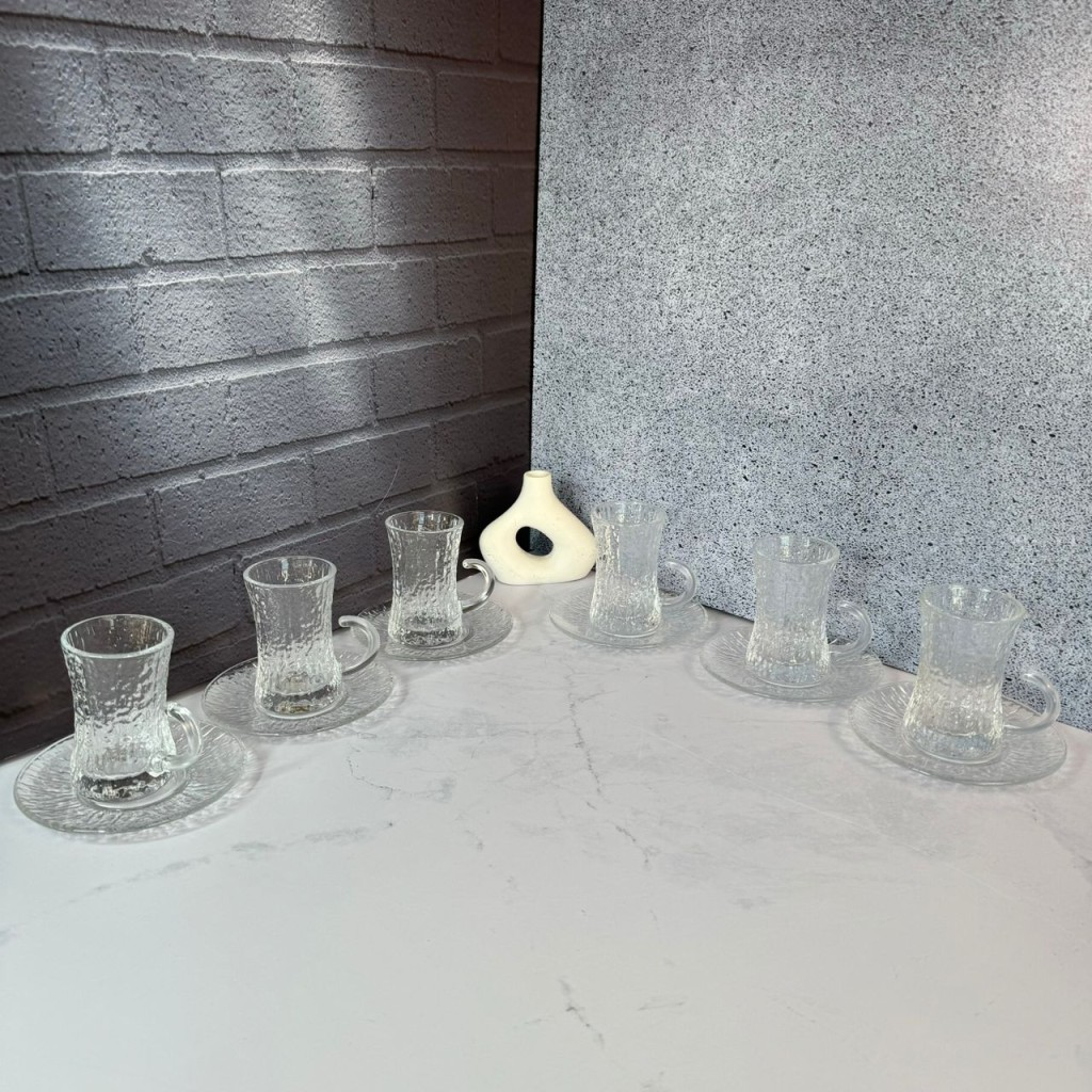 ست استکان و نعلبکی 12 پارچه کمر باریک طرح یخی دلی گلس