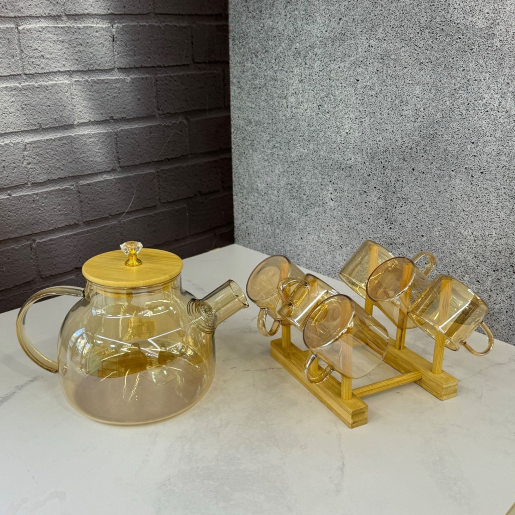 ست قوری و استکان پیرکس آنتی شک درب الماسی شامپاینی