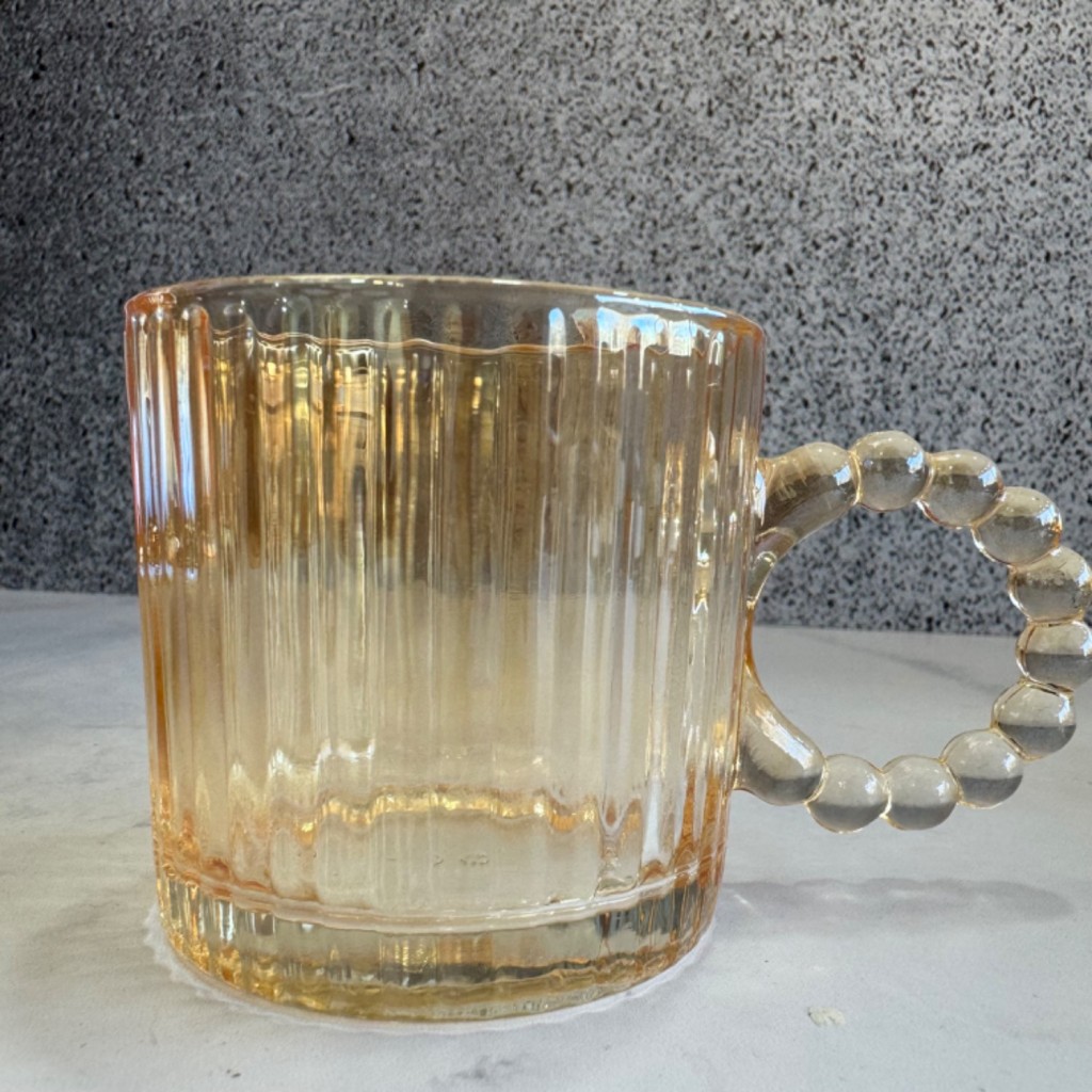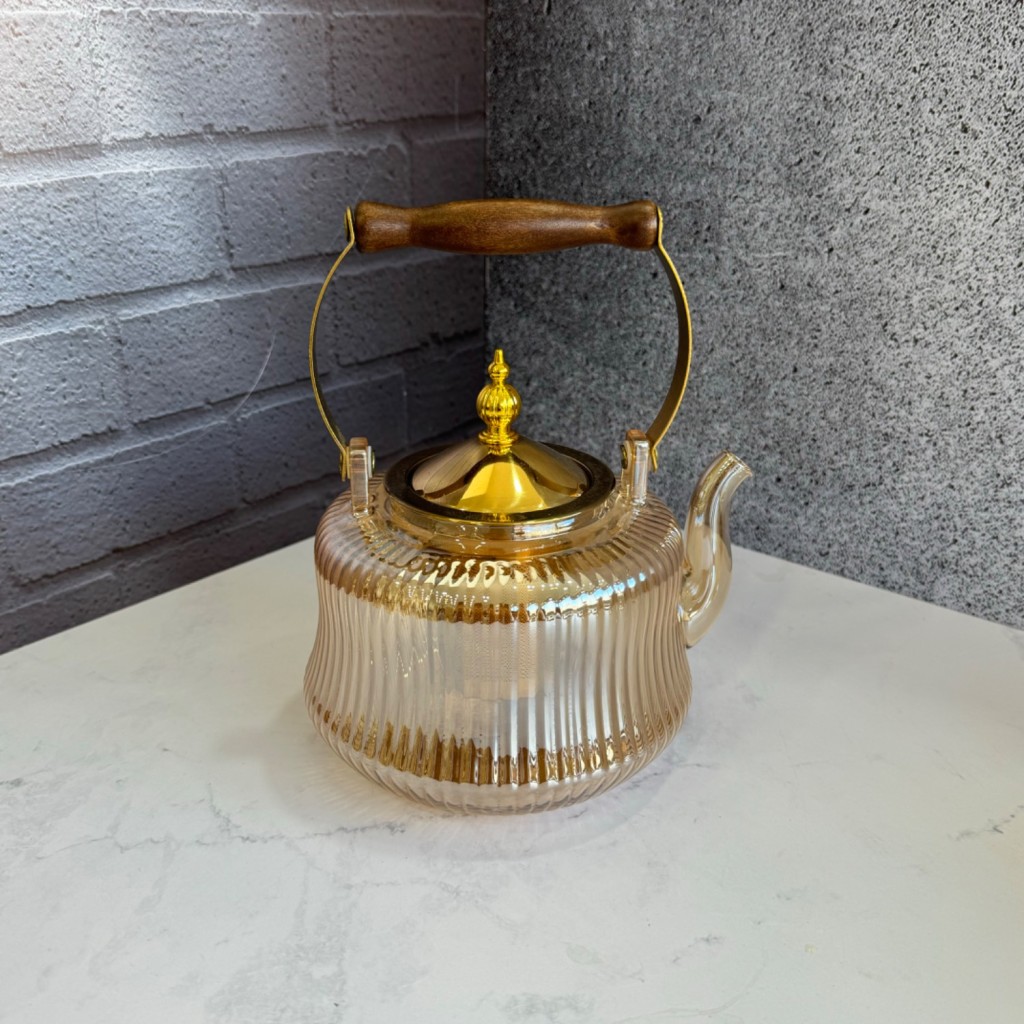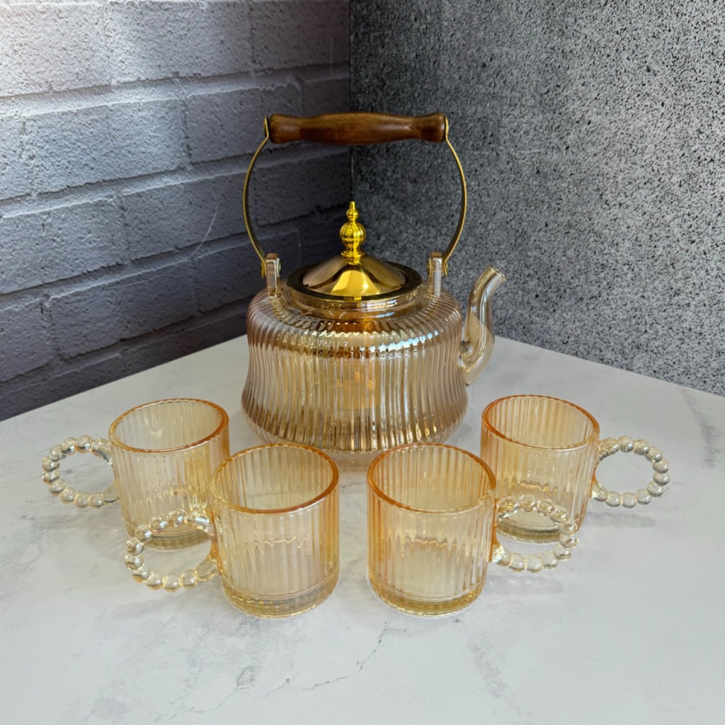 ست قوری و استکان پیرکس دسته منجوق شامپاینی