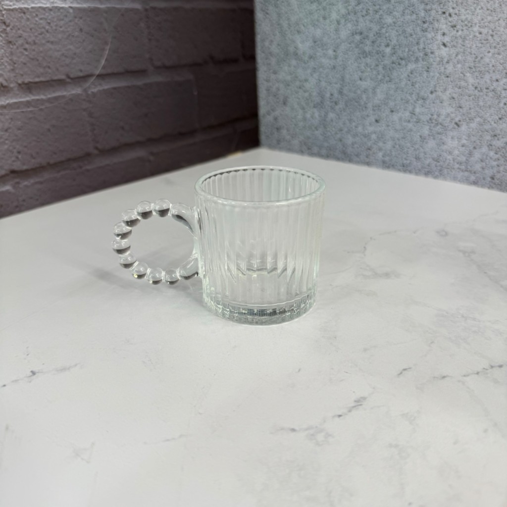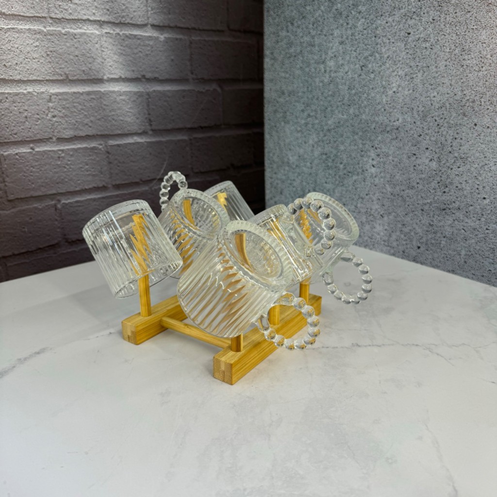ست قوری و استکان پیرکس طرح شیار دار همراه با استند بامبو