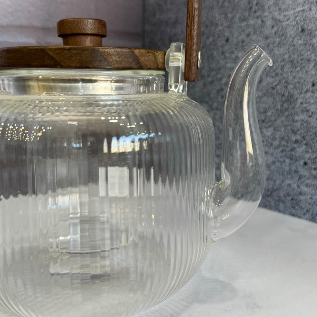 ست قوری و استکان پیرکس درب بامبو شیار دار