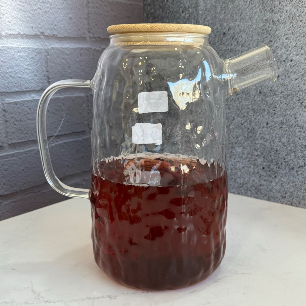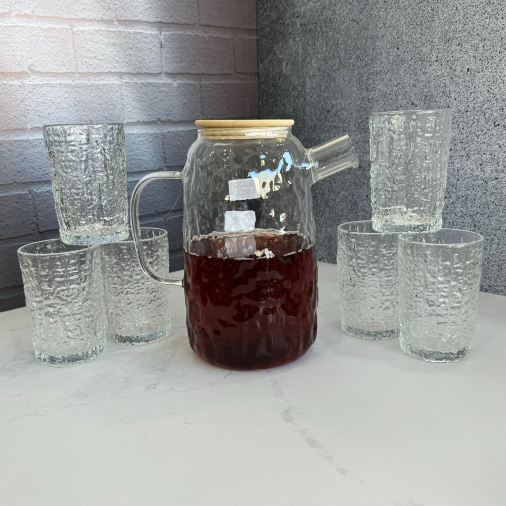 ست پارچ و لیوان پیرکس درب بامبو طرح یخی