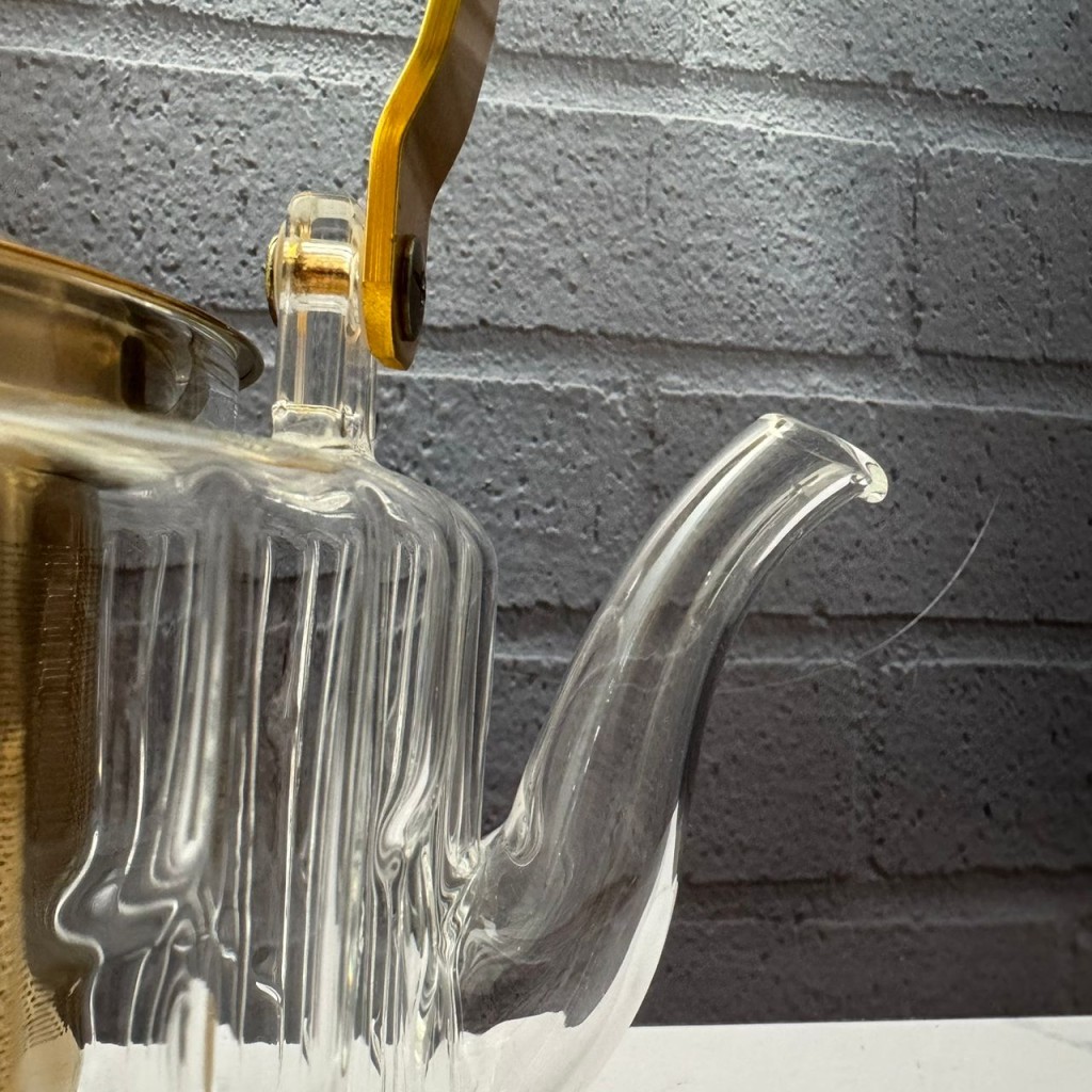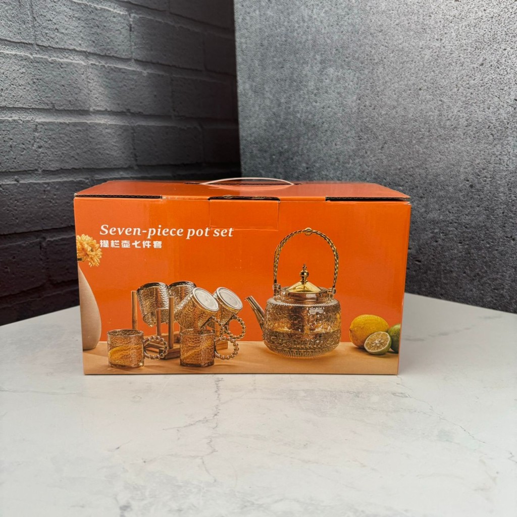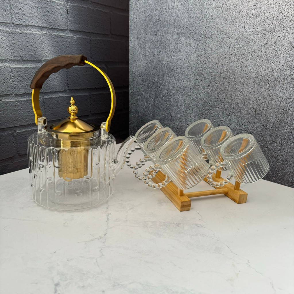 ست قوری و استکان پیرکس همراه با استند بامبو