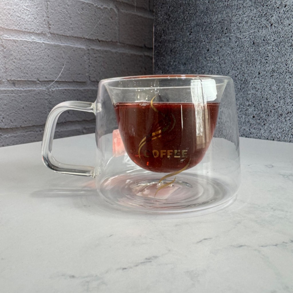 شات قهوه خوری پیرکس دوجه داره تکس دار دسته مربعی