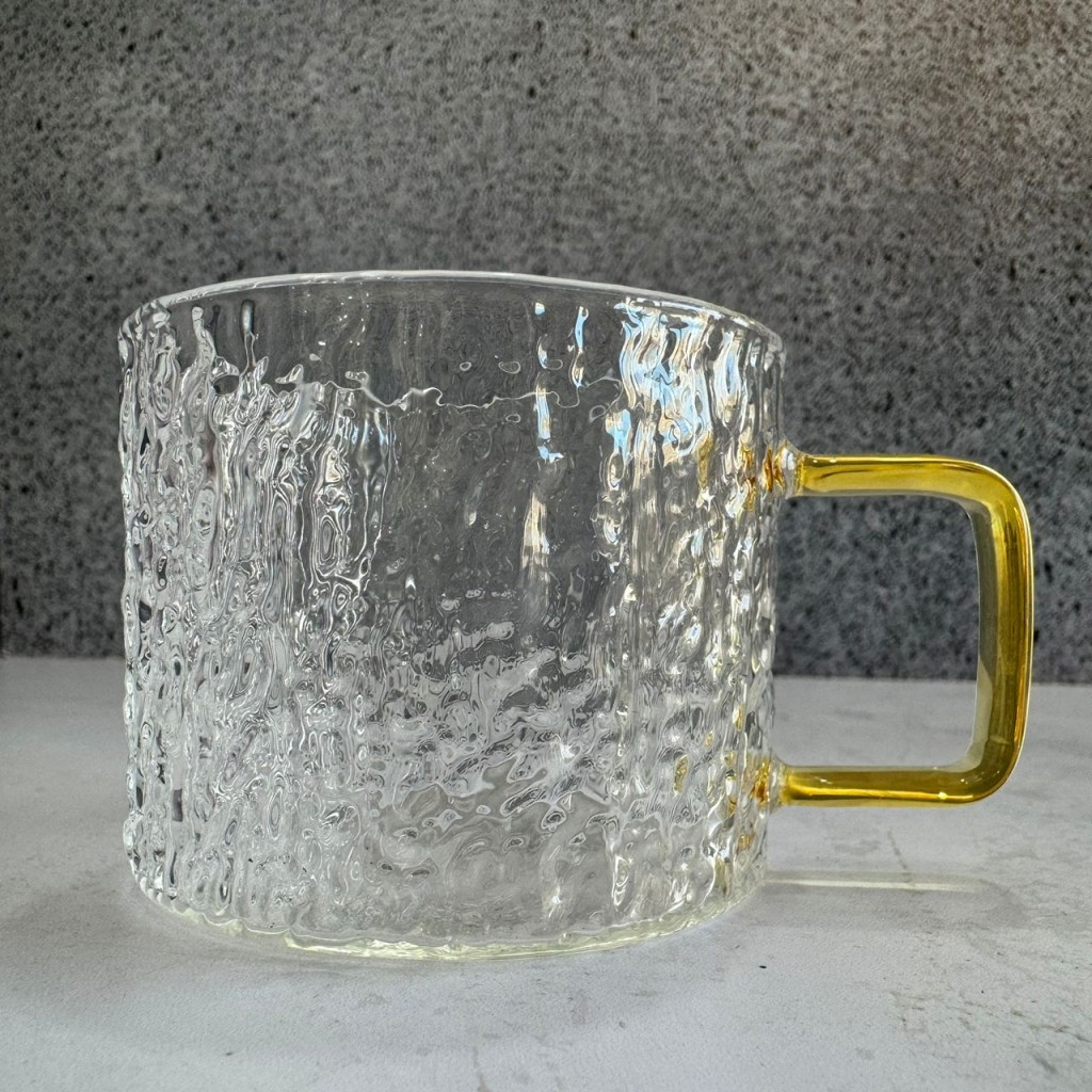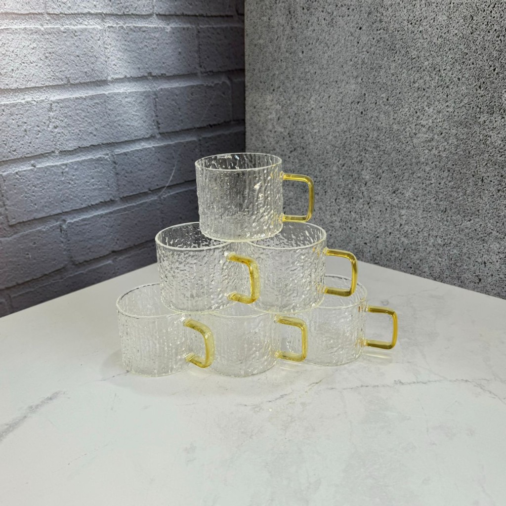 شات قهوه خوری پیرکس مدل سنگی دسته طلایی مربعی