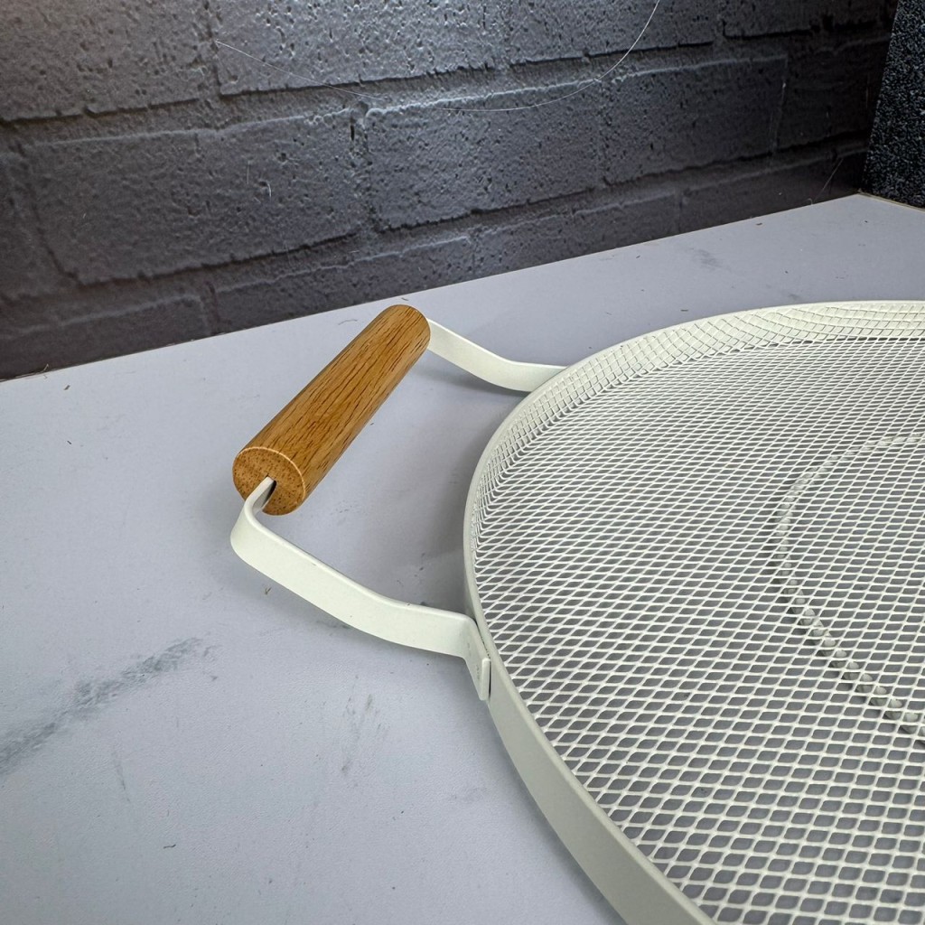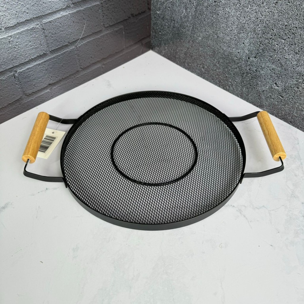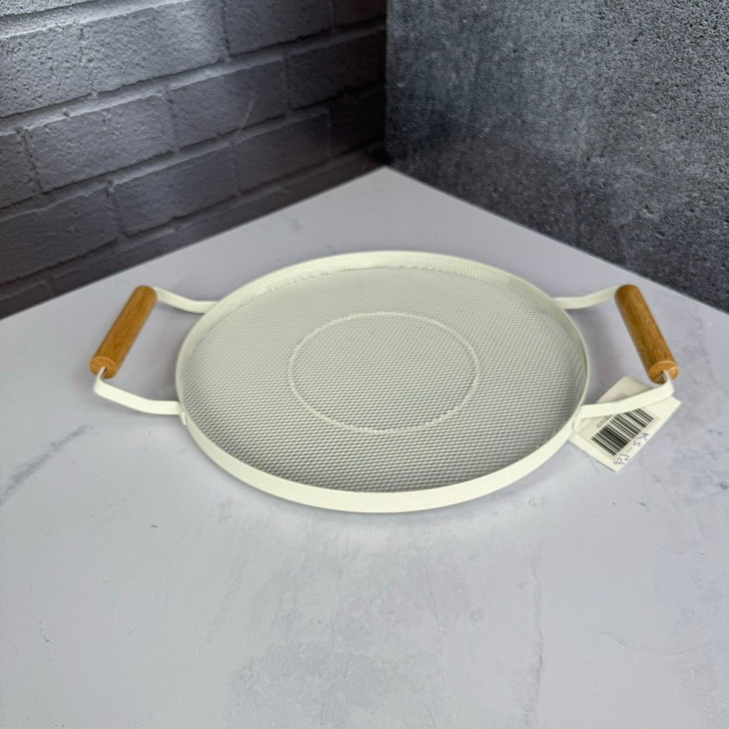 سینی فلزی تخت دسته بامبو توری طرح گرد