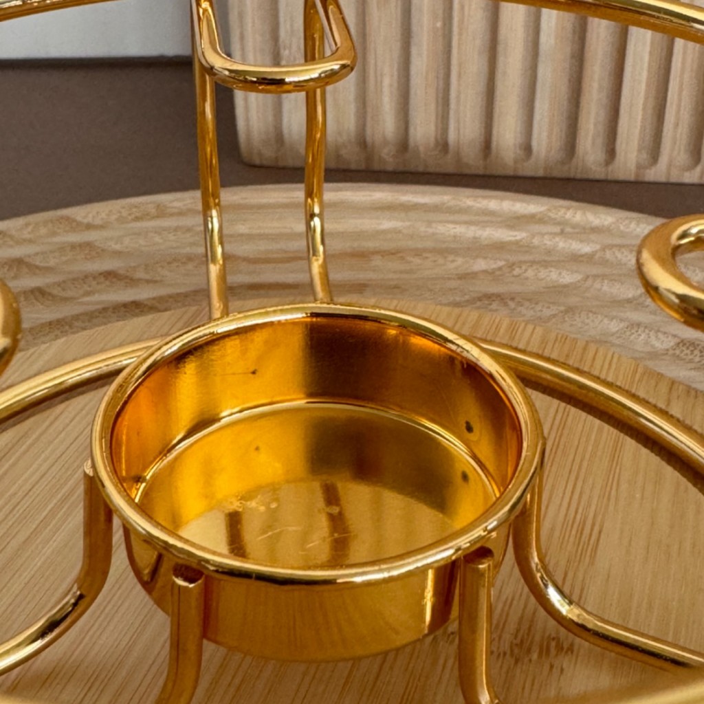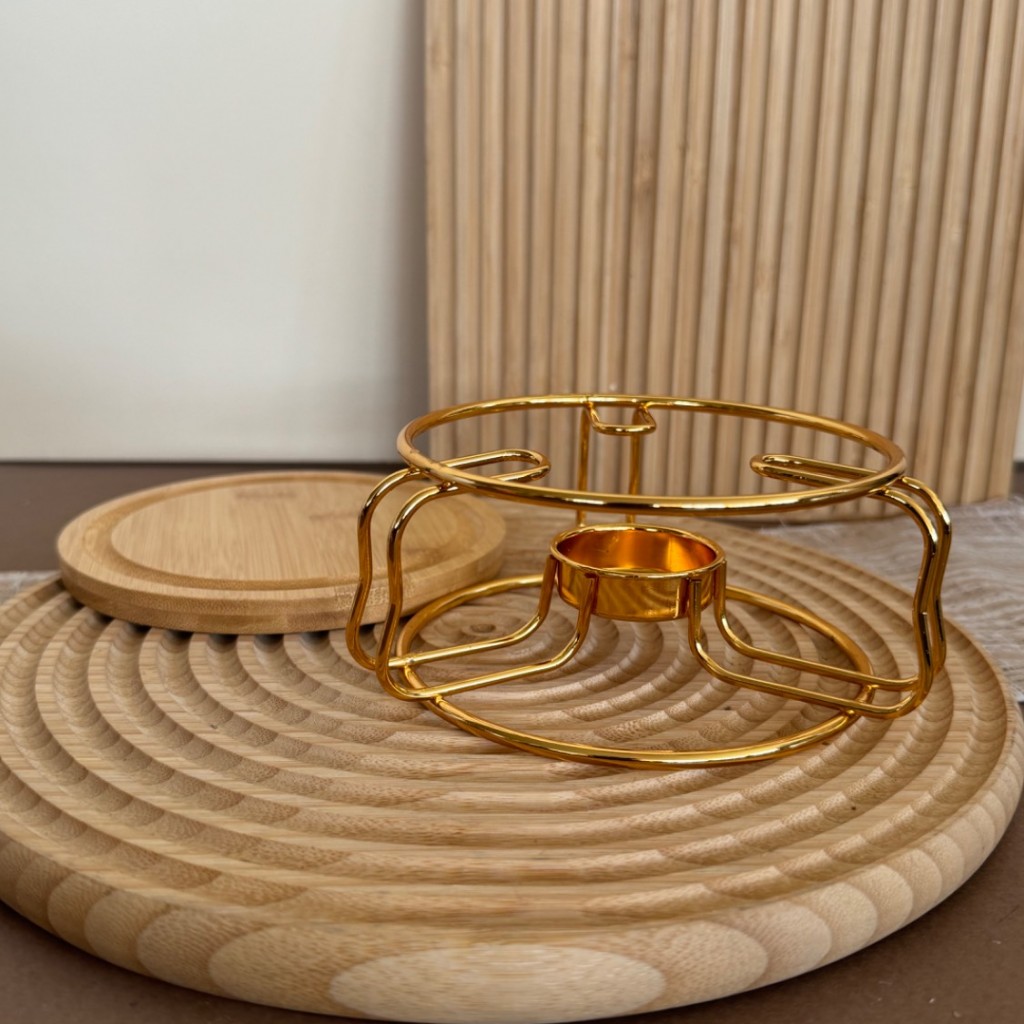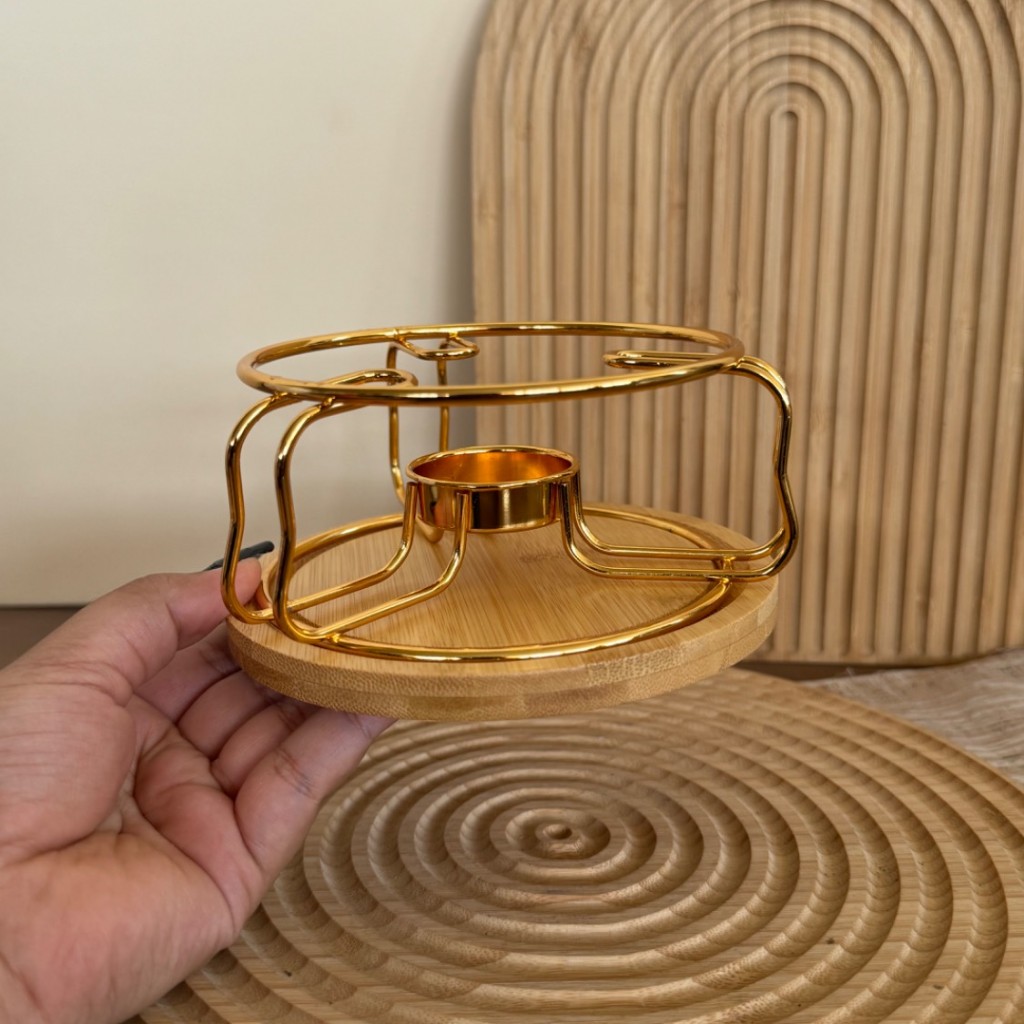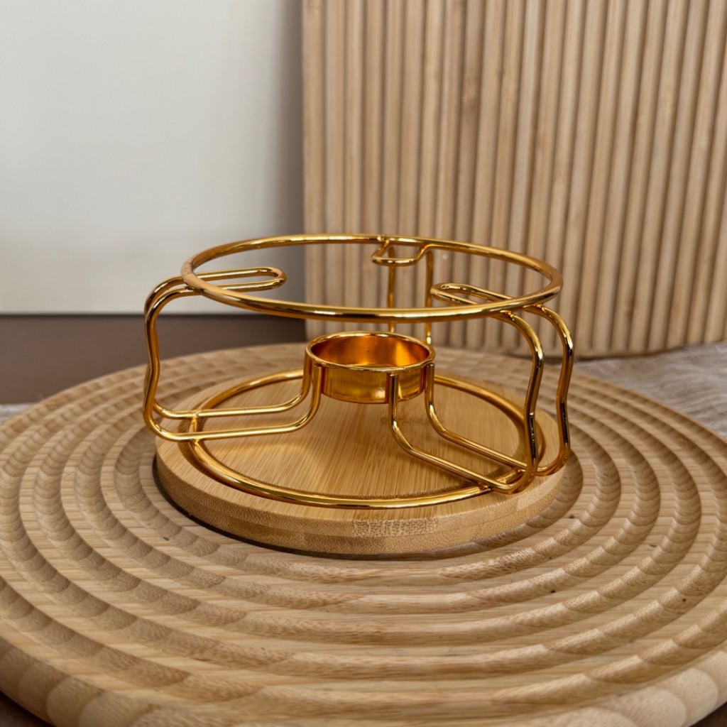 وارمر قوری استیل طلایی همراه با استند بامبو